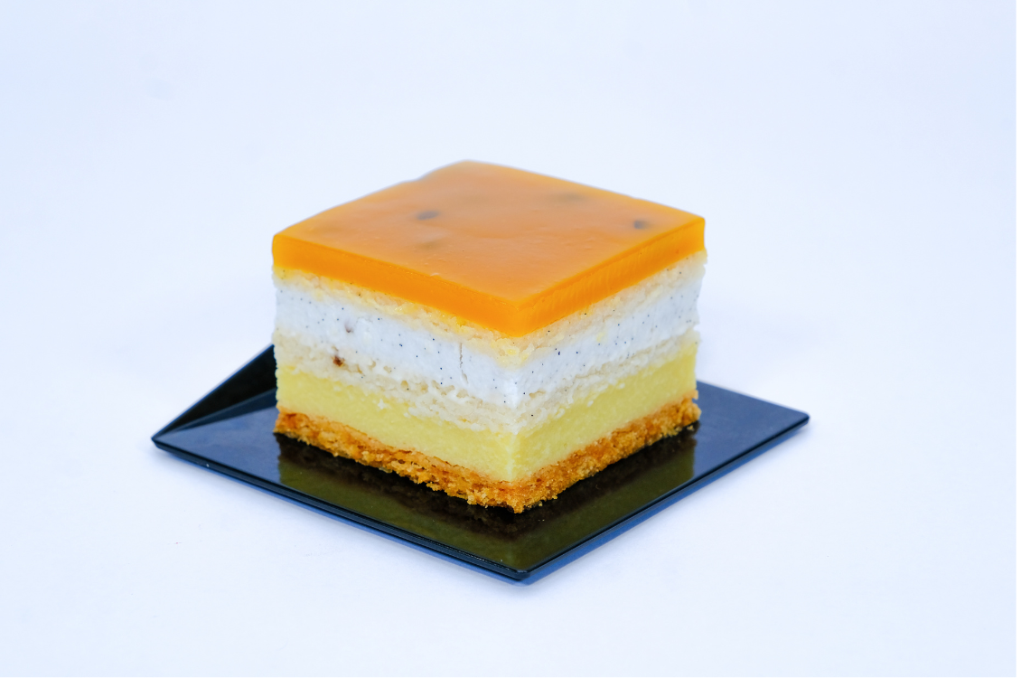 Mousse de Mangue, Gelée de passion & Biscuit Special